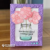25. Beautiful cards & color combinations. I’ve done the same thing with stamping the wrong side of the stamp before too. Lol. Love the embossed frame & how you made the flowers pop. #stampitcontest