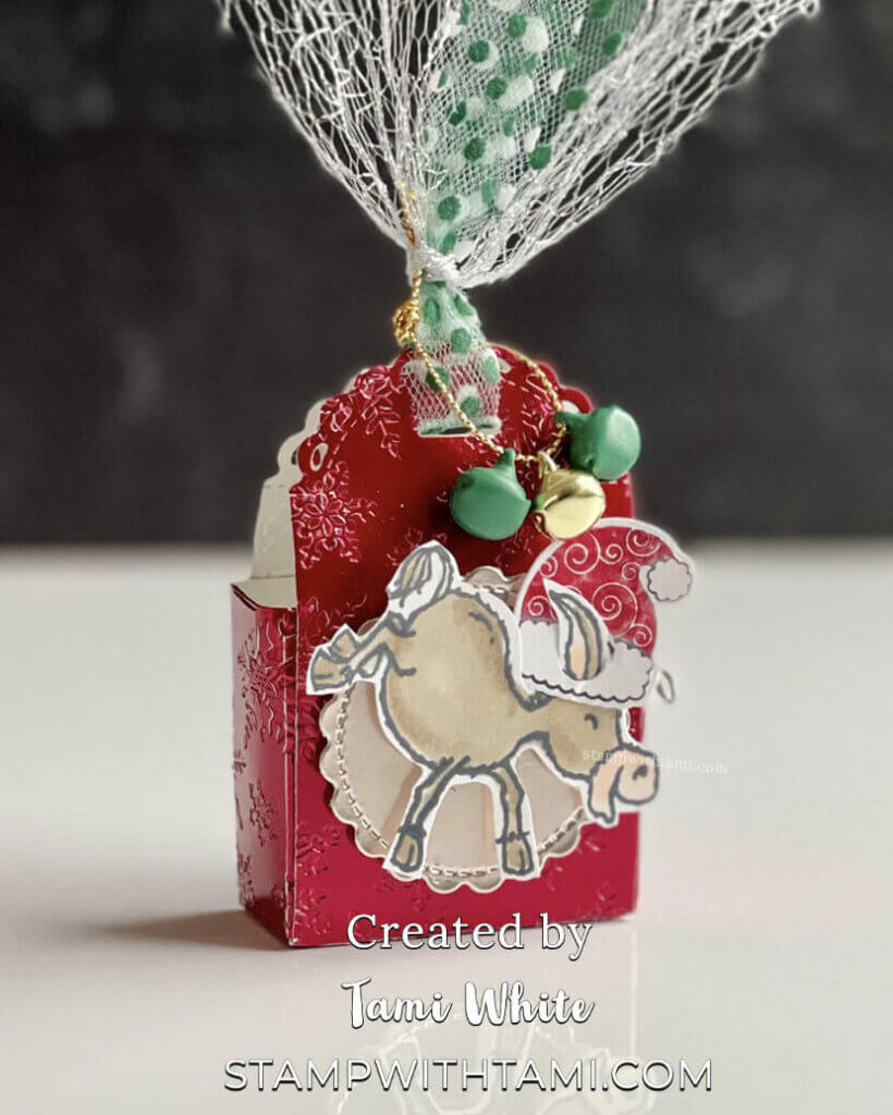 He Haw it’s time for Dominick the Italian Christmas Donkey and friends foil handmade holiday treat box class. You’ll flip over these adorable gift treat boxes featuring characters from the Stampin Up Warm & Toasty stamp set and our star of the show, Dominick, is from the upcoming Darling Donkeys Sale-a-bration stamps. Learn more about the 2021 catalogs here.