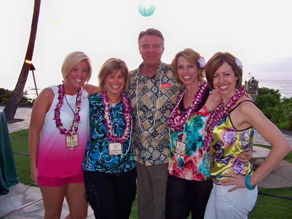 Stampin’ Up threw a welcome party by one of the pools our first night. We were greeted by cute Hawaiians bearing beads and flowers for our hair. The picture to the right is part of our gang (and former Advisory board) Leasa Williams, myself, Dale Filemore (President of SU), Cheryl Flynn and Catherine Pooler.