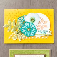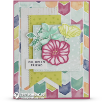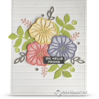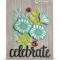 This “celebrate” card is a real “wowzers” from the Stampin Up Oh So Eclectic Stamp Set and coordinating Eclectic Layers dies set. With a little help from the Celebrate You thinlits dies. The background is the Wood Textures DSP and a little bling from the Tinted Faced Buttons.