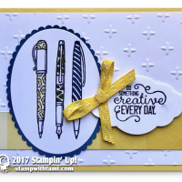 Do something creative every day! I live by this saying. From one of my all time favorite stamp sets called Crafting Forever from Stampin Up. The pens were colored with the new Stampin Blends markers. Speaking of the Blends Markers, the new colors are finally in!