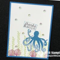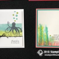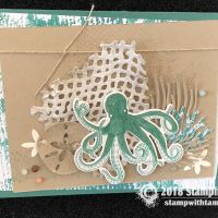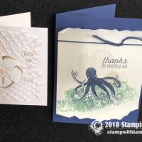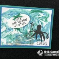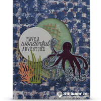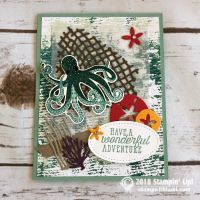 “Have a wonderful adventure” card from the new Stampin Up Sea of Textures Stamp Set and coordinating Under the Sea dies. The window in the center is cut with the Layering Ovals dies, and the words are stamped on the circle from the Stitched Shapes dies. The background is the Tranquil Textures designer paper.