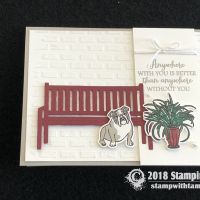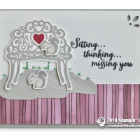 This sympathy card is so sweet with the little squirrels and the “heart” popping off the bench. Created with the Stampin Up Sitting Pretty stamp set and coordinating Pretty Park dies. The designer paper is from the Share What You Love collection. See more info and ideas from the bundle below.