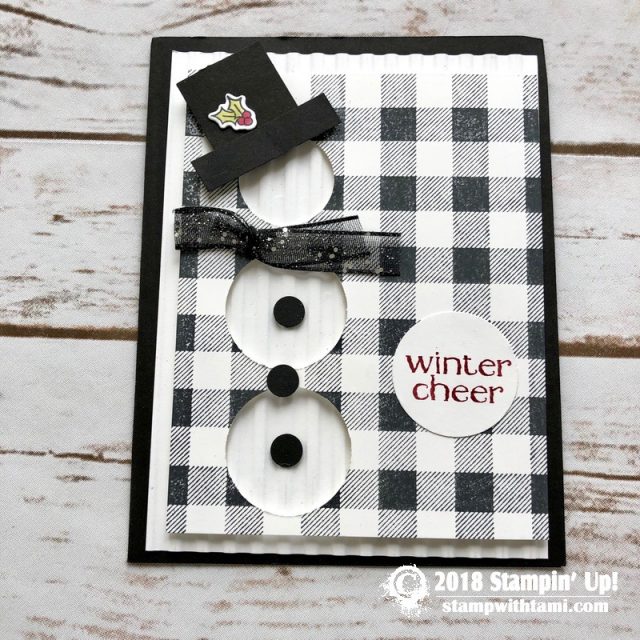 Do you want to build a snowman? On this online class video I’ll share how to make this cool snowman “window” card. Featuring the Stampin’ Up! Buffalo Check stamp and the Corrugated impressions folder.