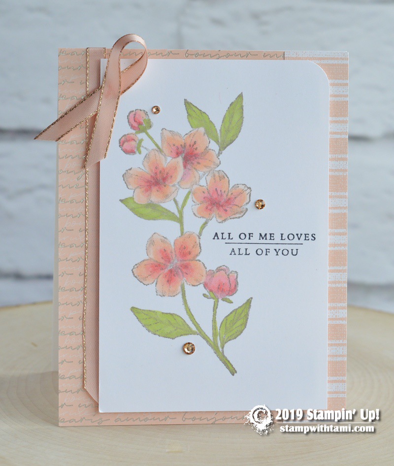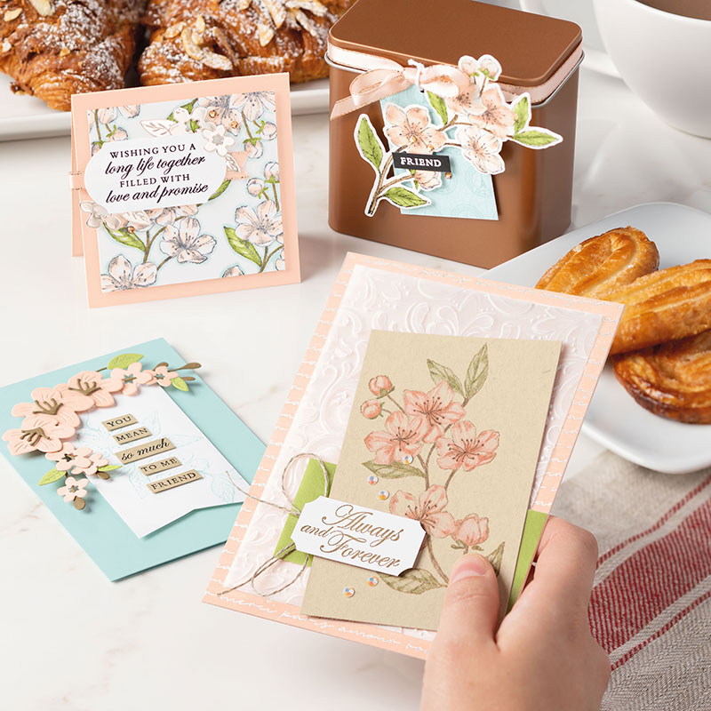 Today’s spotlight on retiring products is Part 1 of my 2 part series on the Parisian Blossoms Suite in the2020 Mini Catalog. This is a mega-suite with 2 bundles: Forever Blossoms and Parisian Beauty. These samples focus on the Forever Blossoms stamp set and coordinating Cherry Blossoms dies. The Parisian Blossoms Specialty Designer Paper is on sale.