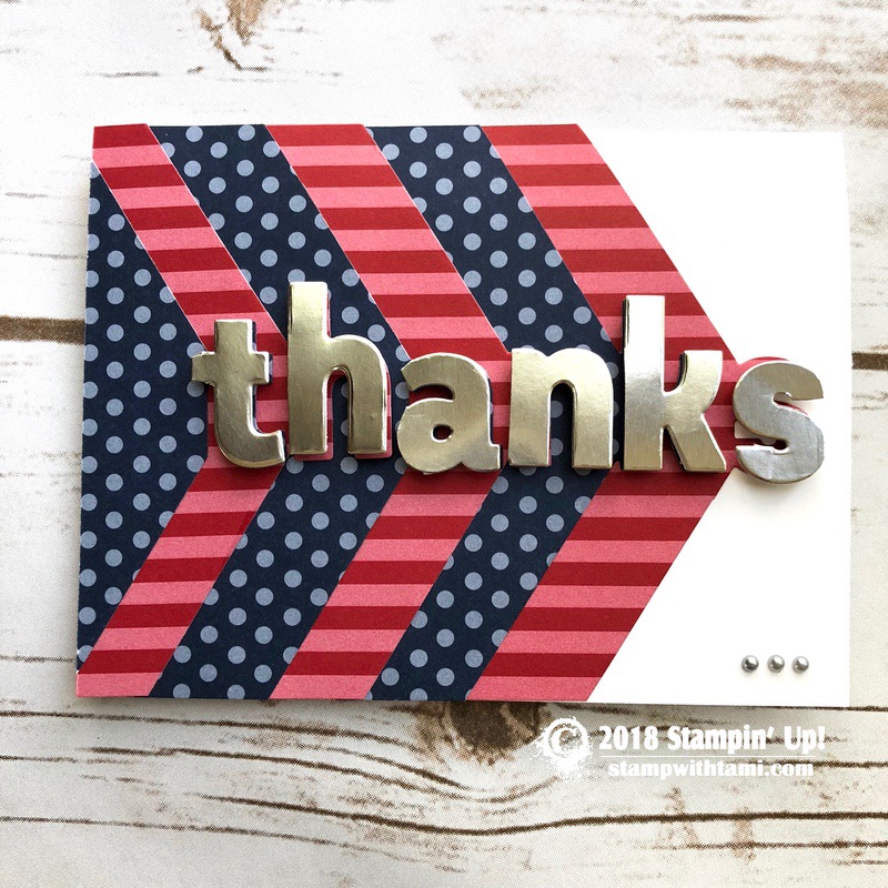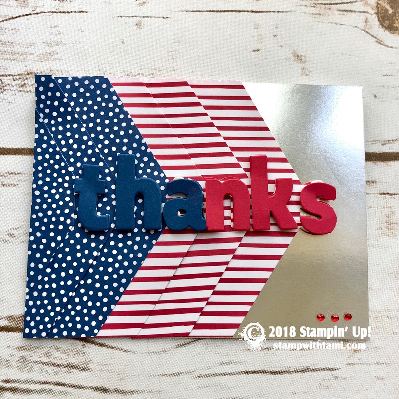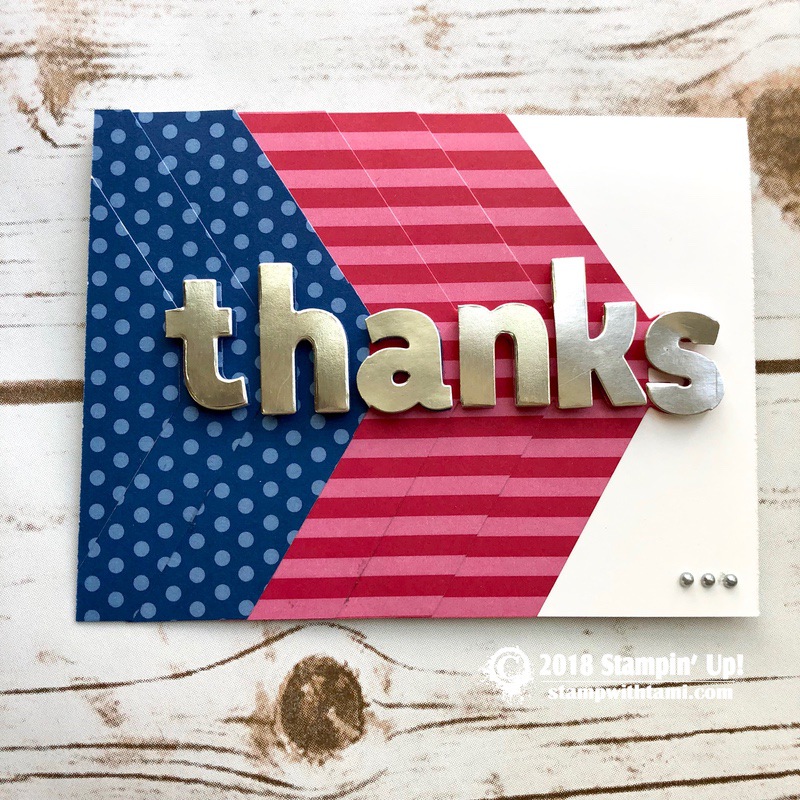 Happy Memorial Day weekend. Thank you to all who’ve served our country, and all who are in the front lines now. I’ve put together some of my favorite patriotic thank you cards ideas in case you need that “special” card for that special someone. Some of these are retired, but you can improvise if you don’t have the exact products. The Lined Alphabet Stamp Set and Layering Alphabet Die set are both retiring (see full retiring list here) . The dies are on sale at over 50% off!