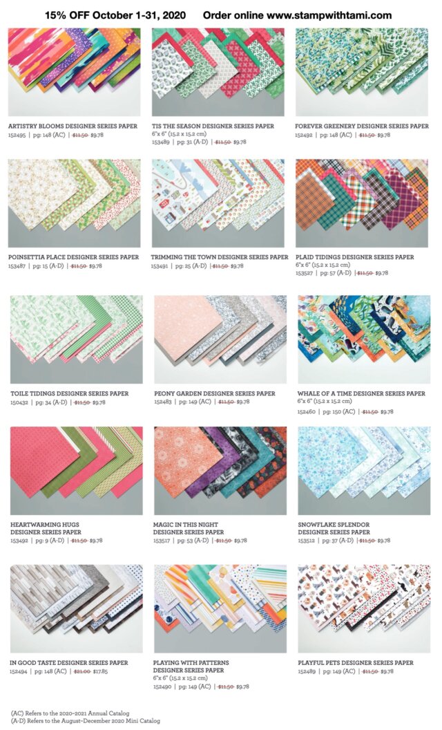 Stock up and save. We all love gorgeous Designer Series Paper, and during this incredible sale, you can enjoy a 15% discount on select papers from our current catalogs! Now is a great time to stock up and save on some of our most popular paper designs!
